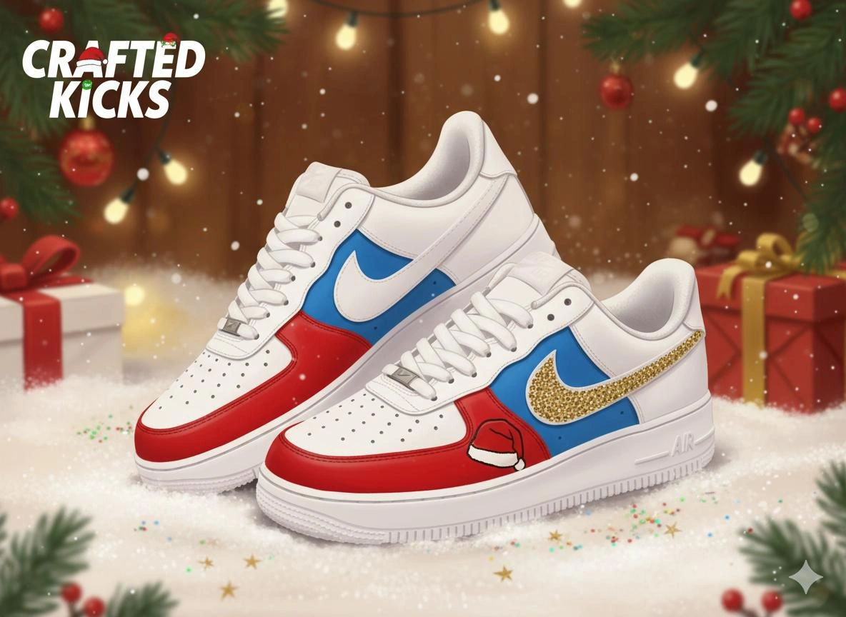 Christmas Glitter Edition from Crafted Kicks turns the classic Air Force 1 into a festive statement piece designed for holiday season fits and photoshoots.